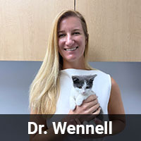 Outside of her professional life, Dr. Wennell enjoys fostering animals. Over the past year, she and her husband have fostered three cats, in addition to caring for their own dog